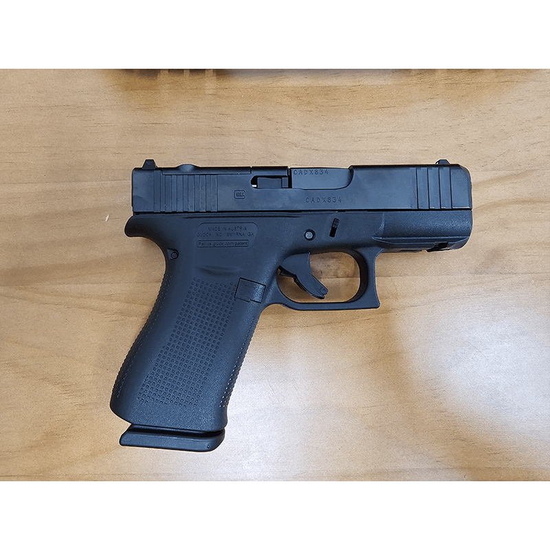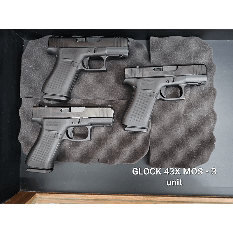 The G43X MOS has a short subcompact barrel length and a comfortably balanced, versatile compact-size grip with a minimal profile. It incorporates elements of the Slimline series such as the short trigger distance, a frame with a built-in beavertail as seen on the G43 and the G42, a reversible magazine catch. This model has the incredibly accurate, match-grade GLOCK Marksman Barrel (GMB) of the Gen5 series. The G43X MOS also features precision-milled front serrations.