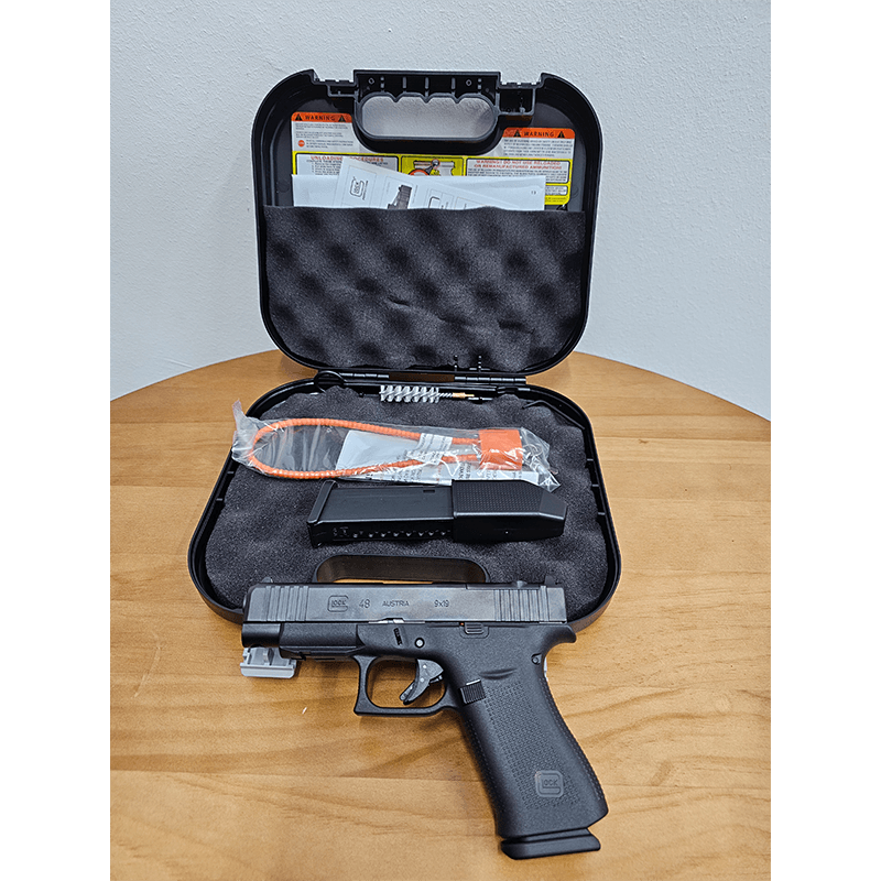 The frame features the GLOCK Slim Mounting Rail for mounting tactical accessories and incorporates elements of the Slimline series such the short trigger distance, a frame with a built-in beavertail, a reversible magazine catch and the incredibly accurate, match-grade GLOCK Marksman Barrel (GMB) of the Gen5 series. The G48 Rail also features precision-milled front serrations.